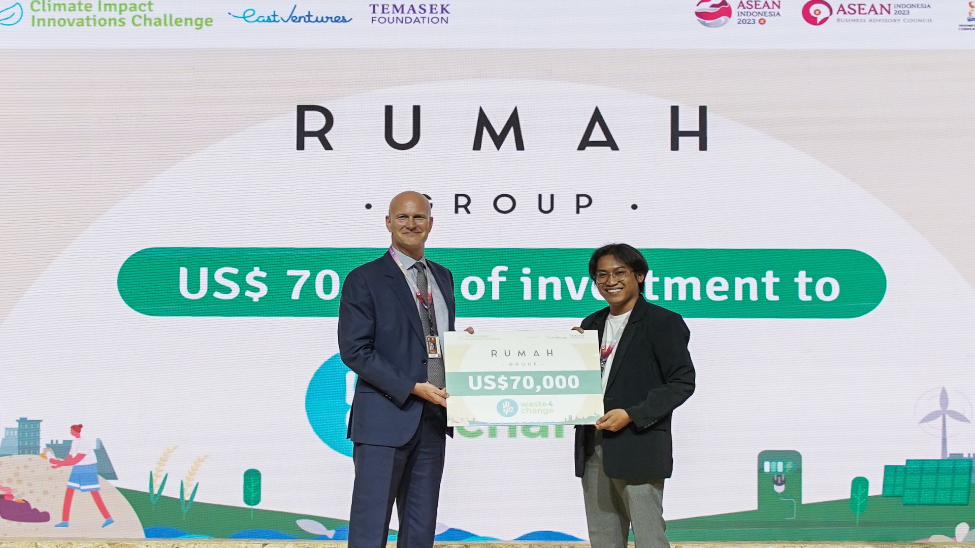 “Thank you so much to all parties involved in the CIIC 2023, especially for East Ventures, Temasek Foundation, and also Rumah Group. We know that it’s only the beginning, and we’re excited to finally be able to establish our low-value plastic recycling facility together with RiverRecycle—expanding our impact. Looking forward for the future collaboration with everyone in this cause, including with all finalists of CIIC,” said Bagas Mukti Wibowo, Senior Business Development Executive of Waste4Change.